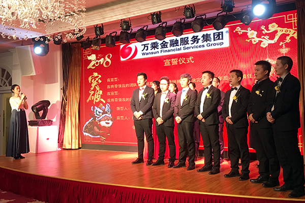 万乘金融服务集团CEO/总裁韩总莅临本次盛典,对陕西万乘作为万乘金融服务集团成立的第一家分公司十年来所做出的的业绩给予了肯定及赞许。同时也对陕西万乘提出了新的要求和期许。我们陕西万乘的全体伙伴激情满满,斗志昂扬,在陕西万乘张总的带领下集体宣誓:我们定将全力以赴完成2018年的各项任务指标,决不辜负集团总裁室对我们的信任和期许。