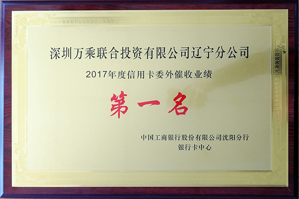 2018年3月2日,中国工商银行沈阳分行张处长、沈经理等一行三人莅临辽宁万乘为我司颁发“2017年度信用卡委外催收业绩第一名”奖牌。