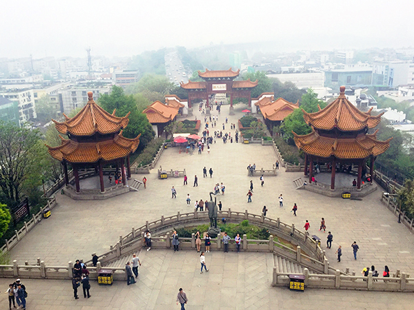 经过大概10分钟的车程,我们到达了第一站——黄鹤楼。“昔人已乘黄鹤去,此地空余黄鹤楼”,古人笔下的黄鹤楼在雾气萦绕中渐渐地在我们面前显示出真面目。黄鹤楼一直被中国历代诗人吟诗诵赞,享有天下绝景的美称,与湖南的岳阳楼,江西的滕王阁并称为“江南三大名楼”,且以其历史之悠久,楼资之雄伟而居三楼之首,享有“天下绝景”的美称。