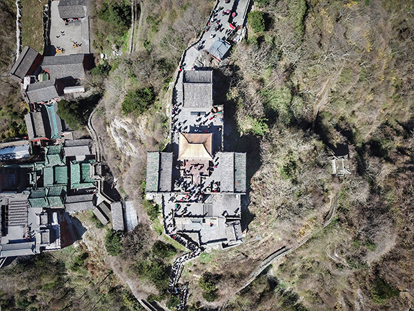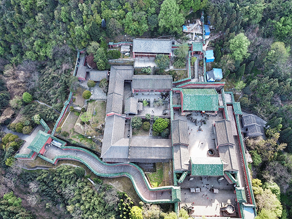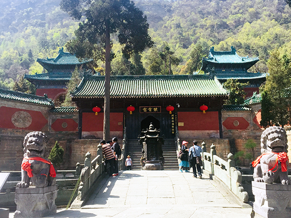 吃过中饭,我们乘坐景区游览车再次出发。第三站,我们到达了紫霄宫,其坐落在武当山展旗峰下,这里群峰环绕,松柏幽深,历来被视为“紫霄福地”,是武当山皇家庙观建筑群的核心建筑,从山门起各殿堂层叠而上,富丽堂皇而不失典雅。