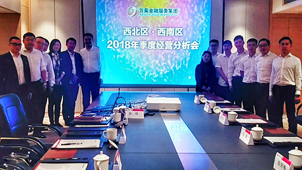 4月24日,万乘金融服务集团总裁室在宁夏自治区首府银川召开西北大区暨西南大区季度经营分析会。陕西公司、榆林公司、甘肃公司、青海公司、宁夏公司、新疆公司、山西公司、广西公司、柳州公司、成都公司、重庆公司、昆明公司、贵州公司、贵安公司的负责人参加会议。