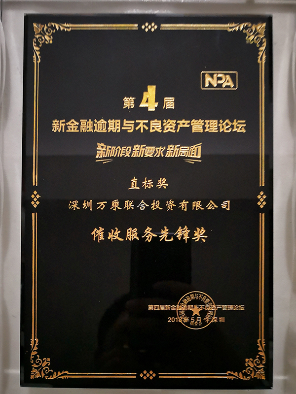 本次大会特设新金融生态业内“直标奖”专场颁奖典礼,旨在表彰积极向上的力量,为行业发展树立新的标杆。由不良资产催收外包产业联盟秘书长王晖在论坛现场揭晓并颁发了“直标奖“奖项。万乘金融服务集团荣获“催收服务先锋奖”,并由总裁助理杨帅上台领奖。
