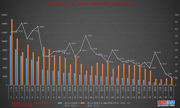 31省份2017年财力比拼出炉:粤苏沪高居前三甲