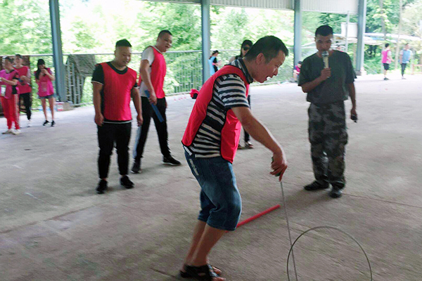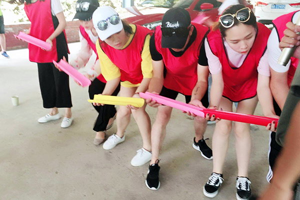 接下来是我们的第二拓展项目:珠行千里,每队所有的队员利用手中的运输器,将目标物用循环相接的方式从A地护送到达B地,运送过程中一旦目标物掉落在地上,需要返回重来。