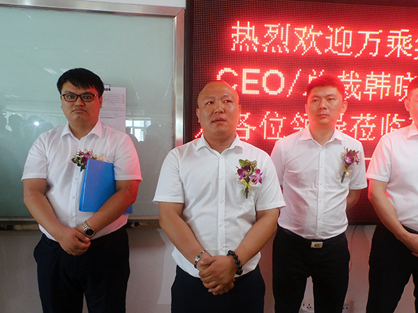 鞍山万乘总经理刘津岐代表鞍山公司全体员工郑重表态:决不会放慢前进的步伐,三大喜事也是三大鞭策,将会鼓舞全体鞍山将士以更高的斗志,向更高的目标挺进。