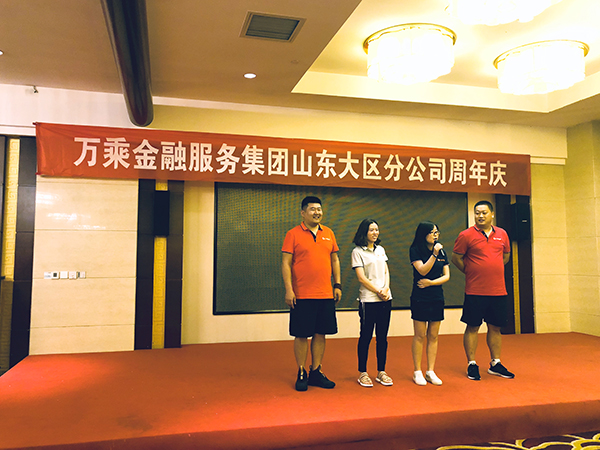 万乘集团山东大区分公司不忘初心,砥砺前行。周年庆晚宴上,山东万乘副总经理周媛、潍坊万乘副总经理李元、烟台万乘副总经理潘治、青岛万乘总经理助理唐秀娜分别发言,鼓舞士气,提升斗志。集团市场部总经理孙艳丽也为山东大区四家公司的生日送上了祝福。最后集团副总裁兼山东大区总经理崔明绪进行了总结讲话,强调此次山东大区四家兄弟公司汇聚一堂,是一次难得的盛宴,大家一定要珍惜机会,多多交流,共同提升业绩,雄霸齐鲁大地,为集团总裁室交上一份满意的答卷。