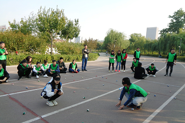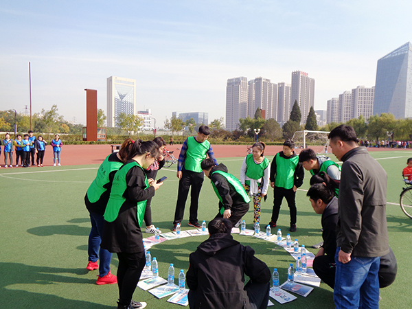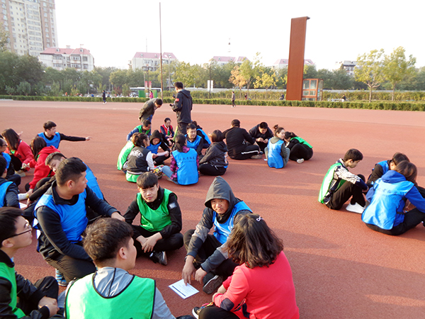 迎着秋日清晨的第一缕阳光,我们在宽阔的唐山体育场集合,在教练的组织下我们随机分成了两队,选好队长,画好队旗,定好口号,开始了我们一天的欢乐之旅。