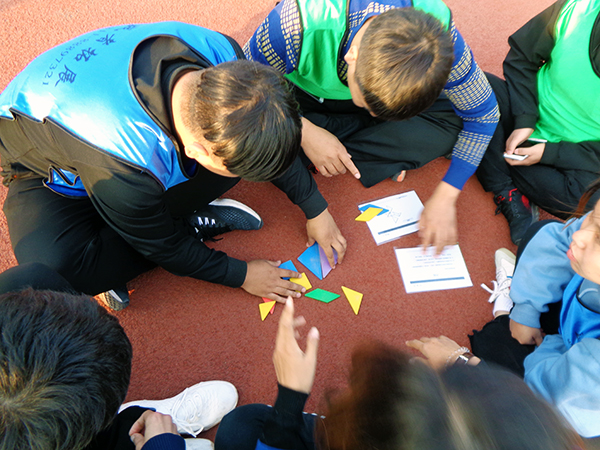 第一个项目——急速60秒,教练准备好了30张图片,每张图片的内容代表着一个数字,将30张图片围成一个圈,一人站在圈内指认图片,其余伙伴在圈外帮助辨认图片内容,要求在60秒内按数字顺序指出图片。图片内容及其抽象,各个队伍在一次又一次的商议,一次又一次的尝试中,终于迎来了胜利,蓝队以59.32秒的成绩完成了项目。项目的成功,离不开队员们的集思广益,团结协作,密切配合。