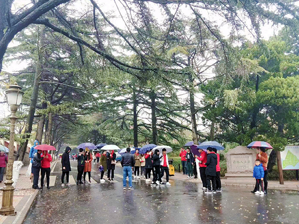 12月2日清晨,青岛的天空漂起了小雨,伴随着小雨我们到达了青岛八大关,雨后的清新和宁静让我们感受到了充满情调的青岛八大关,大家纷纷拿起手机合影留念!