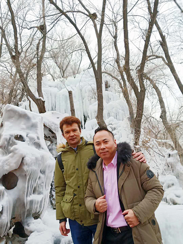 下午4点,新疆万乘全体同仁不俱严寒,游玩路上有的员工欣赏冰雕花灯、有的员工三三两两玩起了自拍,大家有说有笑的来到红山公园山顶,一路途径公园南大门沿着正中间的石阶直上可以到达山顶,山体西侧为悬崖式断头山峰,峰头有一座米多高的九级实心砖塔,与对面雅玛里克山的砖塔遥相对峙,统称镇龙塔。
