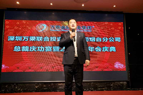 万乘金融服务集团创始人/CEO/总裁韩晓先生发表了热情洋溢的讲话 。韩总指出,烟台分公司成立4年来,在总经理室的坚强领导下,在全体员工的努力下,不断发展壮大,已成为当地催收行业的领军企业。总裁室之所以把2019年的第一场"总裁庆功宴"放在烟台,就是看好烟台分公司的发展潜力,冀望和相信烟台分公司一定会在2019年创出更好的业绩!
