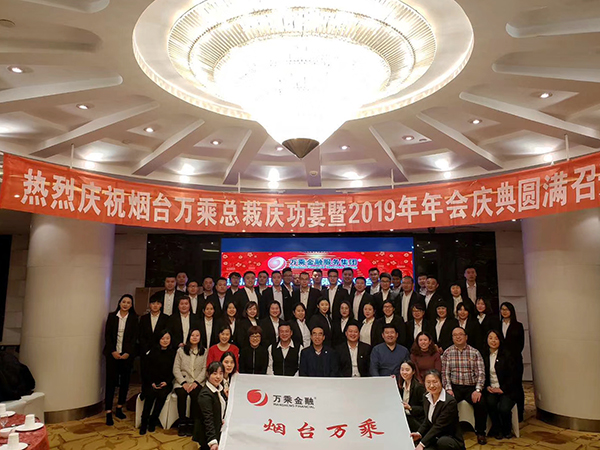 初雪后的烟台,银装素裹,分外妖娆。1月2日晚,万乘集团2019年第一场"总裁庆功宴"暨新春团拜会在烟台百纳瑞汀大酒店举行。70多名员工和高管带着新年的喜气共聚一堂,共同分享这欢乐的时刻。