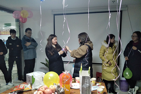 环节五:互赠礼物送祝福:活动前,员工们都各自准备了一份小礼物,以抽签的形式确定赠礼对象并说出新年祝福;