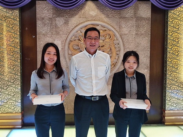 紧接着,开始第三轮抽奖环节,由CFO雷波、董事会秘书兼行政人事部总经理刘润东抽取4个一等奖,奖品为苹果IPAD。