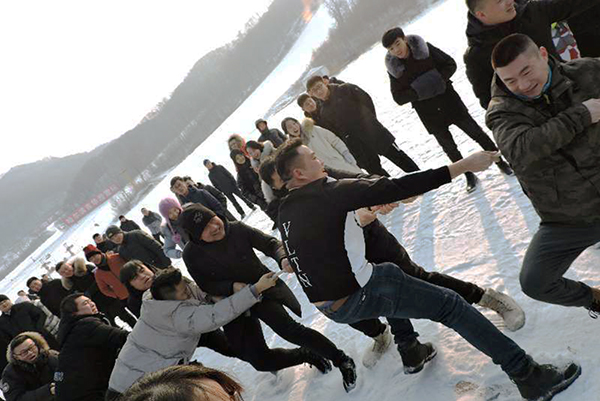 12日下午团建活动正式开始,全体黑龙江万乘成员集聚滑雪场内,一场别开生面的雪地拔河比赛将活动的激情点燃,热血在赛场沸腾,巨人在赛场升起,一条麻绳不仅演绎了奋斗和拼搏,更拉近了大家的友谊,最后蚂蚁金服部以力量优势赢得了比赛的金奖。