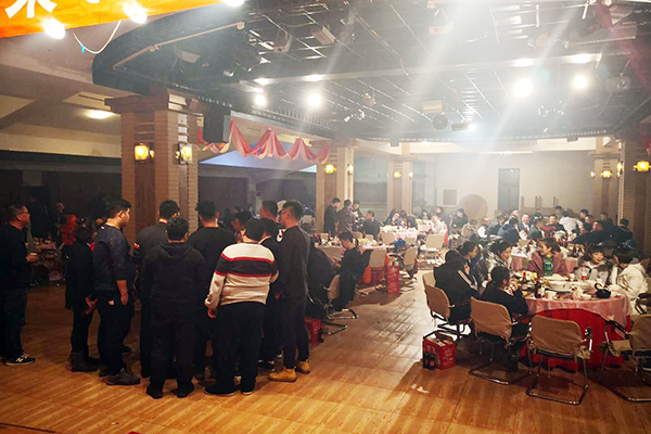 12日17:00,丰盛晚餐正式开始,大家高举酒杯、开怀畅饮。