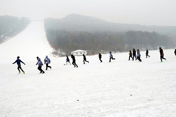 13日早晨,虽然室外温度极寒,但依然没能抵挡住大家对于团建活动的热情。大家早早的起来,吃过早餐,短暂休息后,一场雪地足球吹响号角。