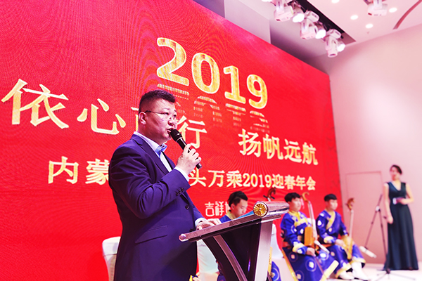 紧接着,在傍晚时分,内蒙古万乘和包头万乘的迎春晚会于西贝宴会城隆重举行。在大家的热烈欢迎的掌声中,巴总上台致词,并引用了习总书记在庆贺改革开放40周年大会上讲的“船到中流浪更急,人到半山路更陡”,我们不怕竞争和挑战,我们坚信万乘集团有能力带领我们走向更灿烂的明天,我们也会完全按照集团的要求,稳扎稳打,稳中求进,稳步推进,以更优异的成绩来展示我们的工作能力和辛勤付出,创造更加辉煌灿烂的2019年。
