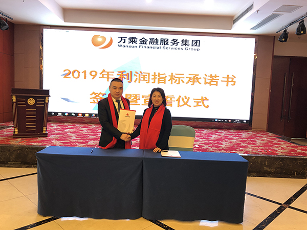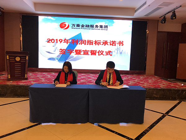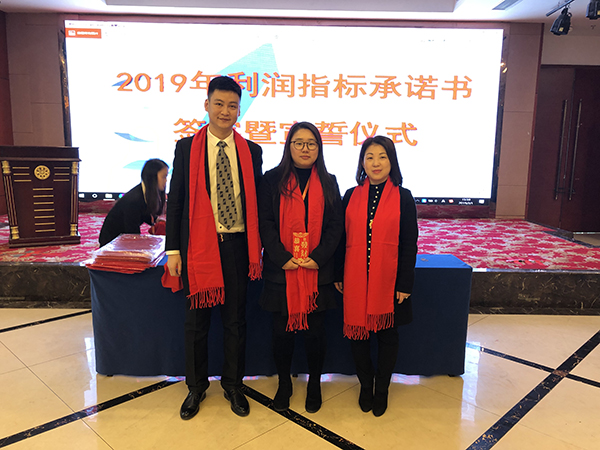 各部门组长签署《2019年业绩指标承诺书》暨宣誓仪式:确立了团队经营目标后,各团队长和总经理室签署2019年业绩指标承诺书并郑重宣誓:新的一年,必将发扬“奋勇拼博,永不言败”的万乘精神,恪尽职守,同心同德,率领自己的团队,圆满完成总经理室下达的各项任务。