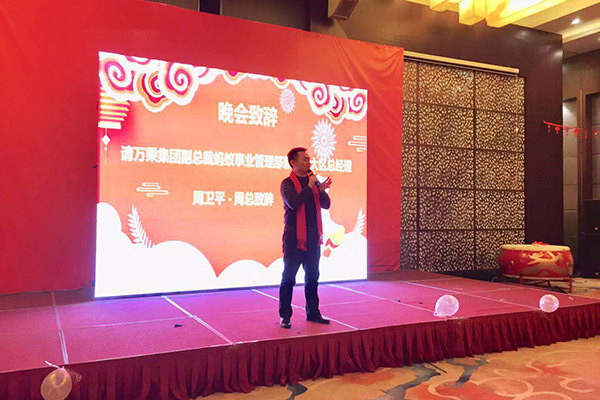 晚会上,周总上台致辞。周总指出,绍兴万乘自2018年4月份成立以来,就能取得净利润在集团60多家分公司当中排名第十五的成绩离不开集团总裁室的坚强领导,更离不开绍兴万乘全体员工的努力,对此表示祝贺,对2018年度绍兴万乘在各项经营领域中取得的成绩表示肯定。周总勉励大家,要克服艰难险阻,抓住目前的有利形势,争取在2019年共创佳绩。