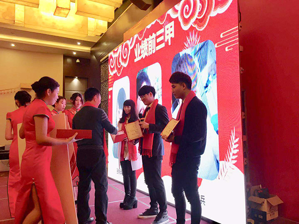 晚会的第三项议程是在2018年度为绍兴万乘做出突出贡献的优秀员工进行表彰,周总为绍兴万乘业绩前三甲颁奖并表示祝贺。