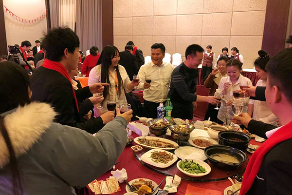 绍兴万乘全体员工参加了新春团拜会晚宴,自编自排奉献了大鼓、非洲鼓、情歌对唱、小品、魔术、相声等共计10个节目,赢得了一片掌声,而中间穿插的抽奖活动和丰厚的奖品更是将晚会推向了高潮。