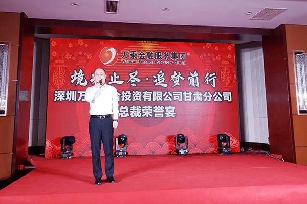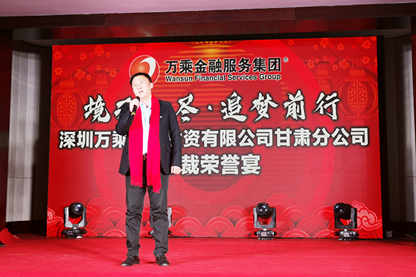 甘肃万乘总经理张廷主持了"总裁荣誉宴"各项仪式并发表讲话。