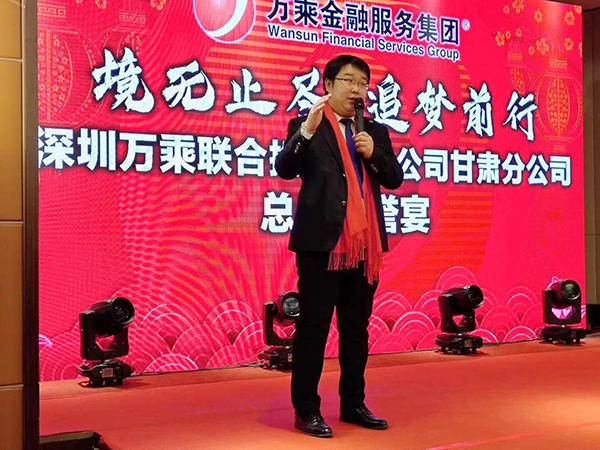 万乘金融服务集团创始人/CEO/总裁韩晓先生对70多名洋溢着青春气息、斗志昂扬的甘肃团队发表了重要讲话。韩总指出,甘肃是一个人口少,自然条件差,经济欠发达地区。在这样一个地区,创出月度佣金100多万元的业绩,成为集团第26家"百万俱乐部"成员,殊为不易。业绩的背后浸透着甘肃万乘人的拼搏、努力和汗水。韩总冀望甘肃分公司,戒骄戒躁,奋发有为,在2019年向着新的目标进击。