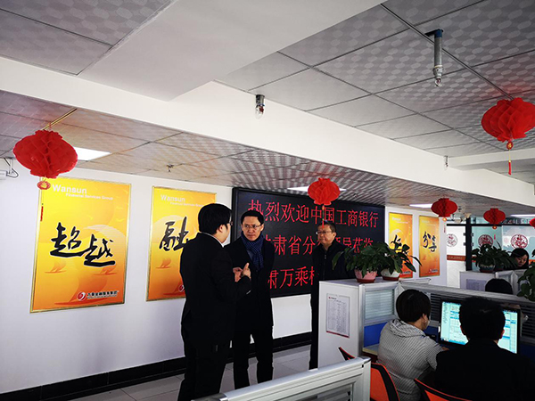 甘肃万乘总经理张廷热情接待了郑行长一行,并详细介绍了公司经营情况、人员配备、业务操作,同时也陪同参观了公司机房、作业区域、后台运营中心、会议室等。