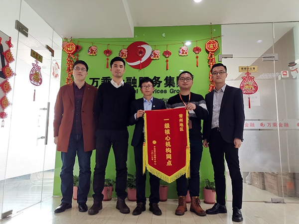 2019年3月6日,中信银行信用卡常州分中心负责人王皓总、南京分中心风险室负责人冯彤辉总、胡耀文经理等领导莅临常州万乘,并为常州万乘颁发“一级核心网点”锦旗,常州万乘业务总监邓占富、常州万乘中信团队负责人仲庆携全体组员热情接待几位到访领导。