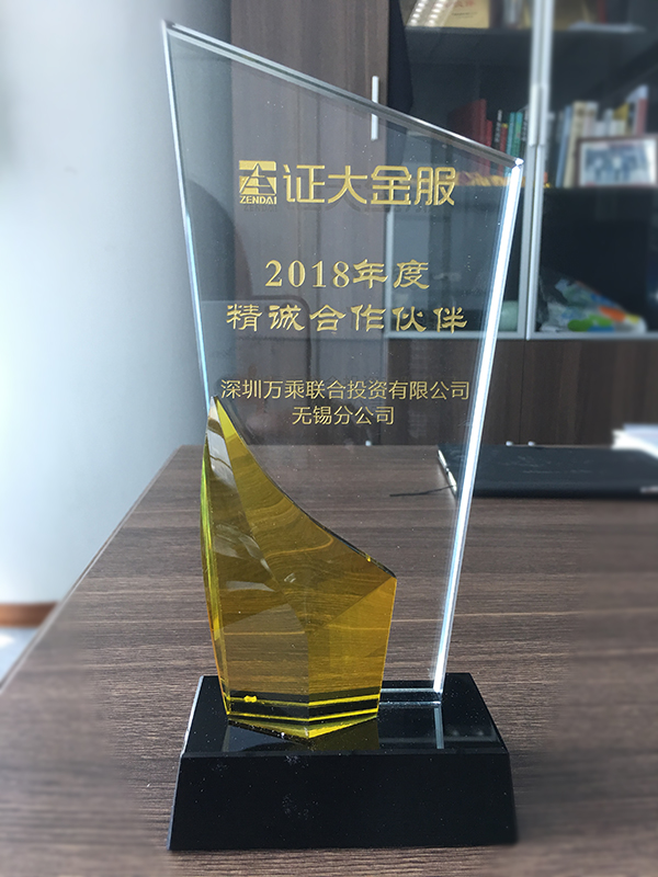 2019年4月,无锡万乘荣获证大金服“2018年度精诚合作伙伴“奖杯。