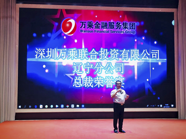 韩总在致辞中指出,在当前经济下行、监管趋严的大形势下,辽宁万乘公司迎难而上,在合规合法经营的前提下,月度佣金突破百万,充分体现了沧海横流方显英雄本色的万乘精神,他代表集团总裁室,向辽宁公司全体将士致以亲切的问候!韩总冀望辽宁分公司,发扬不怕牺牲,连续作战的精神,在未来的几个月冲击新的业绩高峰,为万乘基业长青做出贡献。