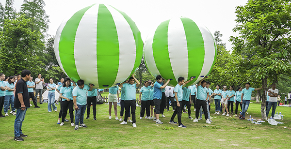 第一环节“运送彩球”活动,锻炼了团队参与者的配合能力、沟通能力以及组织能力,提升了团队凝聚力与战斗力。