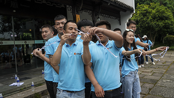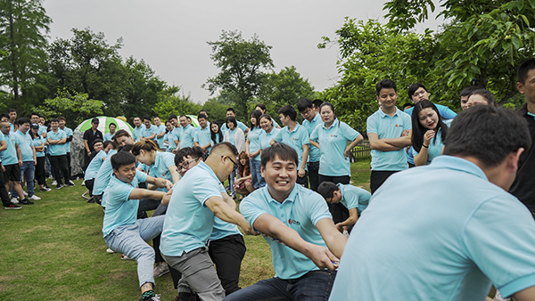 第二环节“拔河比赛”活动,员工深刻了解了团队的力量大于个人的力量,个人的力量凝聚形成了无穷的团队力量。