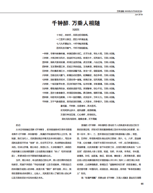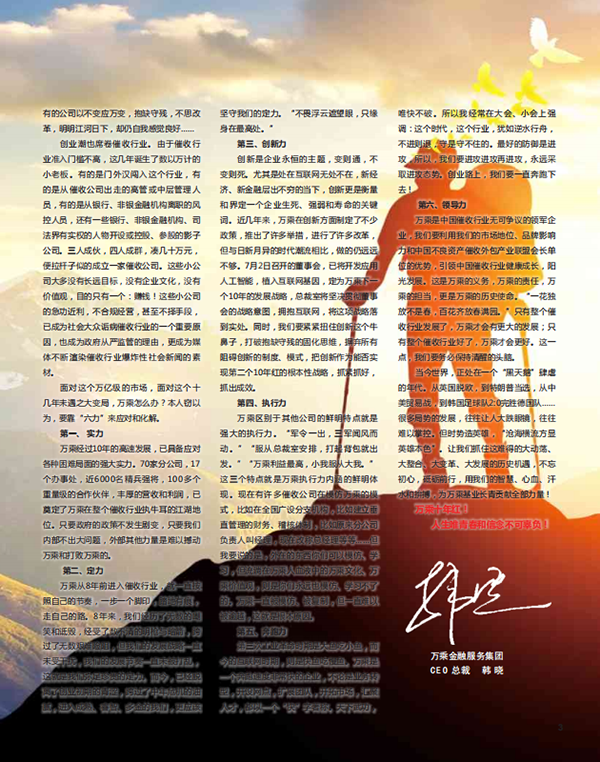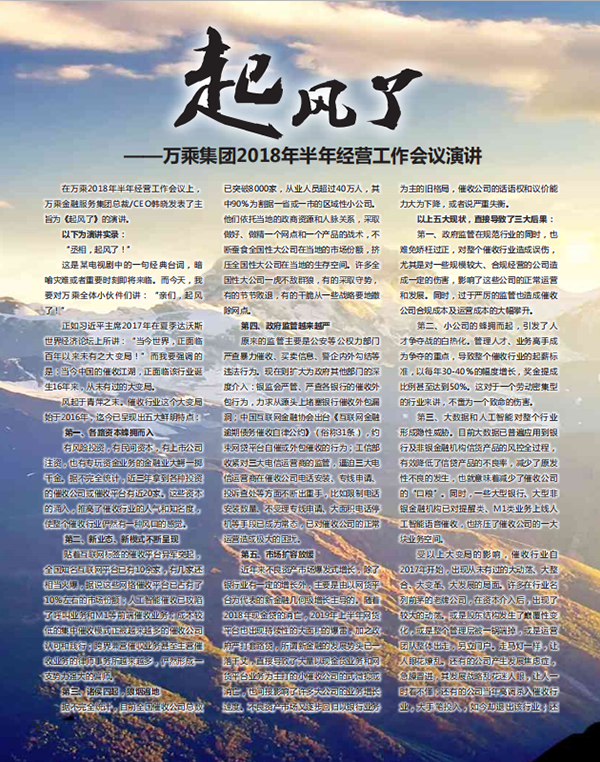 这是万乘金融提升集团文化建设,拓展集团服务渠道,丰富集团成员精神生活的又一举措。它将作为一份丰富的文化大餐,把集团各项工作精彩的呈现到大家面前。