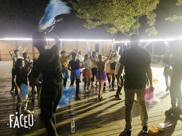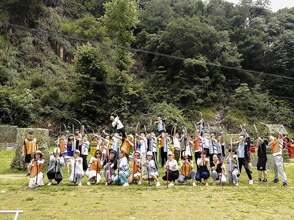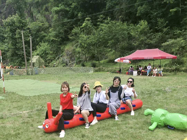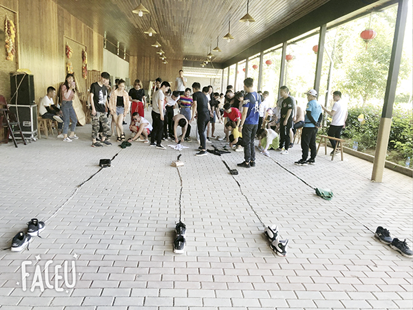 稍作休整后,随着音乐的响起,开启第一天的互动游戏:“我们是最棒的团队”、“10人两足”、“时光穿梭”、“前方打仗,后方支援”,最响亮的口号、最协调的组合、最强的大脑、最大贡献的支援,四项简单分组的游戏。