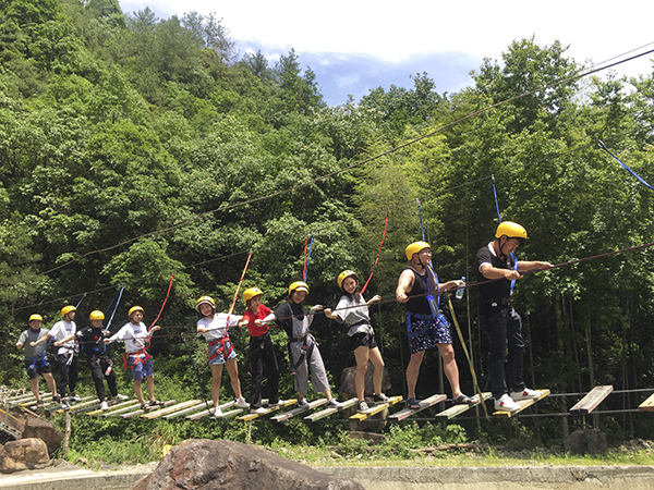 携手并进、飞跃山涧、网墙、独木桥、浮桥、吊桩、天梯、梅花桩、高空溜索、飞檐走壁、飞夺缅甸桥、凌空漫步等十二个项目。