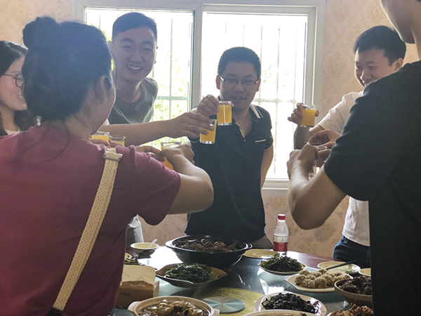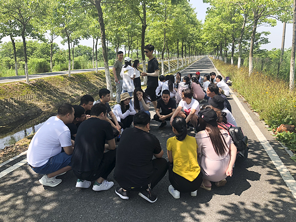 游戏结束后,大家携手前往牛角农家乐,偶遇荷塘, 这样一个看似普通的荷叶,却有着比荷花外表更美更值得人们欣赏的品质,微风过处,一波波的绿浪翻滚而来,茎秆托着花朵挺立于水面,在风中快乐地摇曳着,点点粉白点缀域碧绿中,空气中流淌着荷花的幽香,说不出的一种赏心悦目。让人不由的想驻足留念。