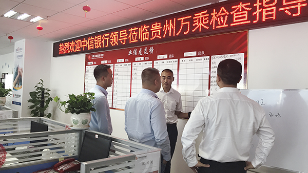 2019年6月25日下午,中信银行股份有限公司信用卡中心贵阳分中心刘总带领风险室黄经理一行三人莅临贵州万乘检查指导工作。