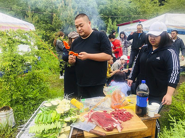 经过短暂的休整后,众人集合开始着手准备午餐。基于平日里高效的行动配合度和深厚的集体友谊,大家克服了景区纯净水资源不足和工具简陋的客观条件,餐饮筹备事宜进行的有条不紊。得益于青海万乘男同志身体素质过硬,女同志数量多,体力活和细节性的事务也能周全处理,巾帼和须眉相得益彰。