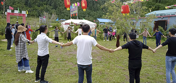 餐毕,到了集体活动环节。青海万乘全体成员组织进行了集体游戏老鹰捉小鸡、丢手绢等童年趣味游戏。虽然青海万乘不少成员已经为人父母,但是简单的儿童游戏不仅勾起了大家对童年美好时光的回忆,还给一群成年人带来了一刻纯粹、清澈的乐趣。欢笑声此起彼伏,大家的快乐在山谷内弥久不息。