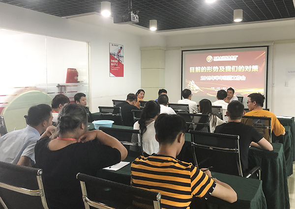 2019年7月29日下午,绍兴万乘召开公司全体骨干会议,深入贯彻学习集团2019年上半年工作会议精神。绍兴万乘副总经理程伟主持并传达会议的主旨精神。