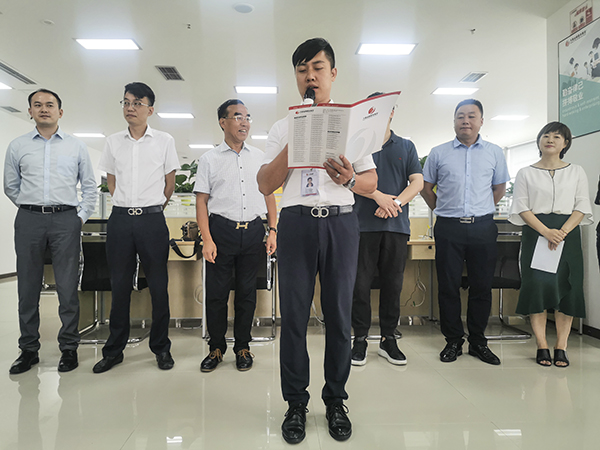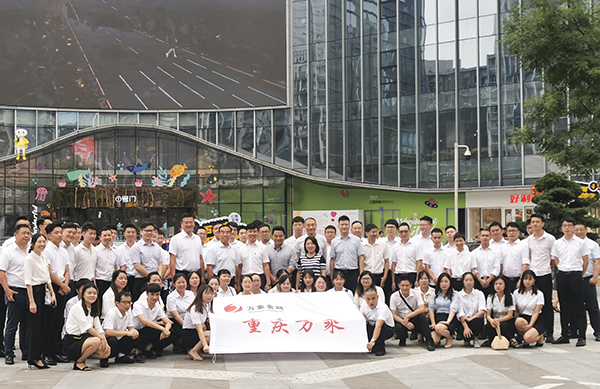 重庆分公司总经理孙云主持了新职场乔迁揭牌仪式并代表公司全体员工郑重表态:决不辜负合作伙伴和总裁室的重托和信任,新的职场,新的起点,新的业绩,增员增效,决战今年最后5个月,向合作伙伴和集团总裁室交一份满意的答卷!
