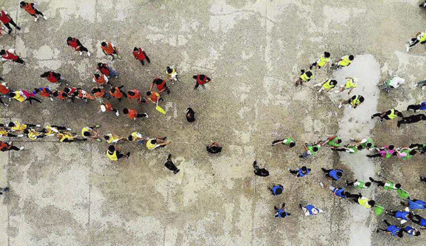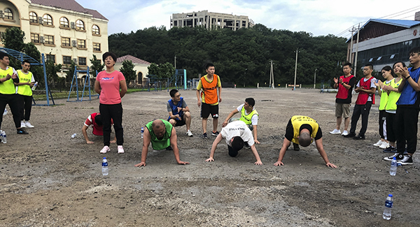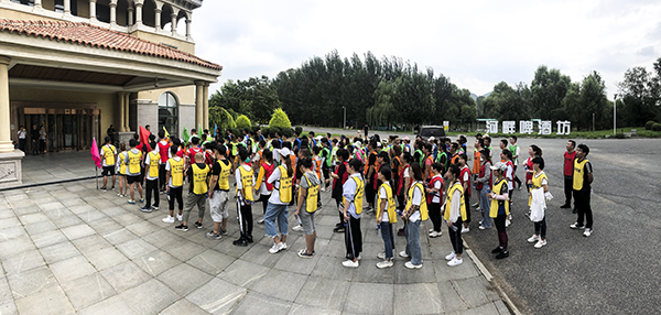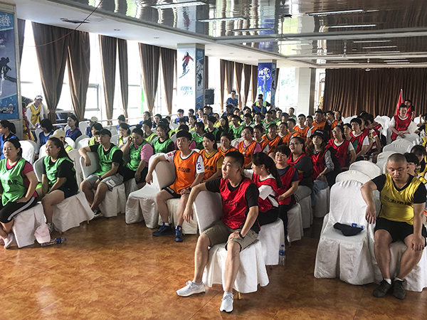 参加活动的一百多人打乱后分为了6个小组由刘总、李总各率领3个小组,展开了团队间的较量。几个团队队名霸气,口号响亮,队歌振奋人心,展示出每个团队不同的文化。