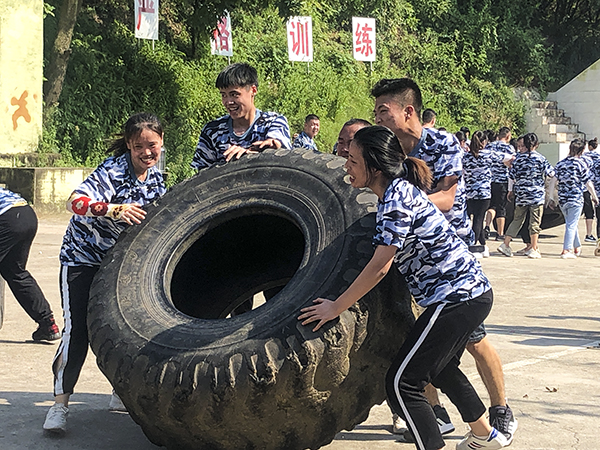 极限轮胎项目更是点燃了参训学员挑战自我、突破自我、超越自我的激情,37度的高温,单个450余斤的轮胎,徒手垂直翻滚,一个半小时内往返多次,很多学员在第一轮时手指就被磨出了血泡,但是他们并没有退缩,简单处理后继续前行,虽然最终没有完成教官下达的50个来回的任务,但是大家在整个过程中没有停歇和退缩,用汗水诠释了坚持到底、永不放弃的精神。