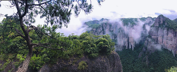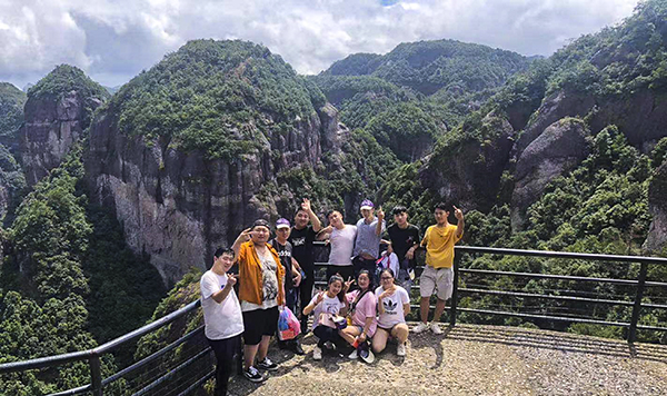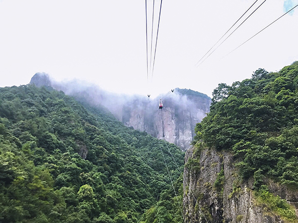 24日清晨伙伴们开始了仙居之旅最核心的地点游览国家5A 级景区—(大神仙居景区),从早上6点多就开始下起了绵绵细雨,但丝毫没有影响伙伴们登山的热情。“新”神仙居以原神仙居景区为起点,沿着石板铺成的小路,弯弯曲曲的向前走去。绕过观音山,走过情侣林,跨过石块搭成的小桥,穿过绿树成阴的树林,后到达索道上山,开始欣赏神仙居的美景。雨中的神仙居别有一番风味,云雾缭绕,装扮得犹如仙山佛国,令人置身其中,仿佛进入仙境。我们沿路向前走去。从山顶上往下看,一山一水、 一崖一洞、一石一峰,都能自成一格,奇峰险崖、绝壁天坑。
