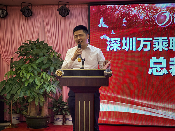 万乘集团副总裁兼深圳万乘总经理杨帅主持了“总裁荣誉宴”,并代表深圳公司540多名员工郑重表态:荣誉已属于过去,1000万的目标将成为全体深圳万乘人新的奋斗方向!全体将士必秉持万乘的狼性精神,砥砺前行,不辱使命,尽快踏破这一关隘,用新的业绩标杆,证明深圳万乘团队的实力,为万乘大业贡献力量!