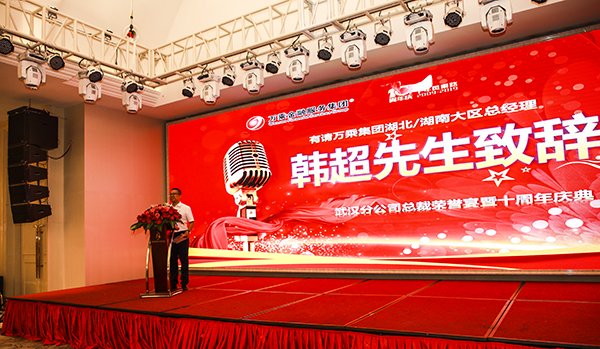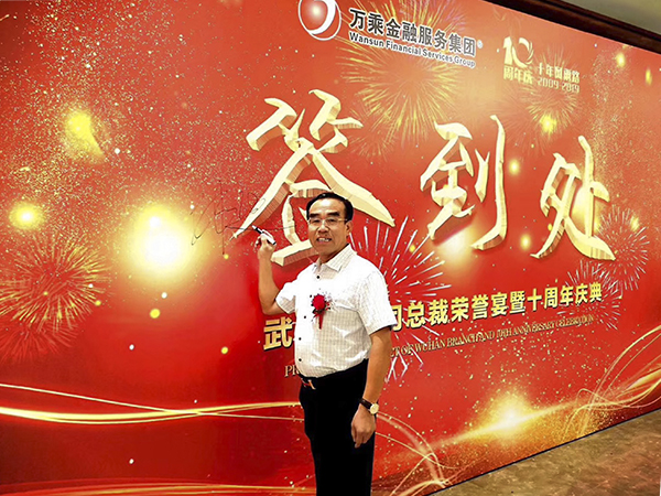 为了表彰武汉万乘的拼搏精神和优异业绩,庆祝武汉分公司成立10周年,万乘金融服务集团创始人/CEO/总裁韩晓先生于9月3日专程来到武汉,为武汉万乘举办万乘集团的最高荣誉一一"总裁荣誉宴",并参加公司成立10周年司庆活动。