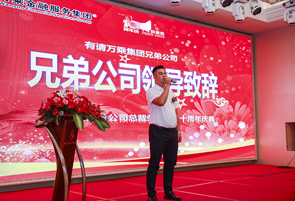 万乘集团董事会秘书刘润东、副总裁周卫平、河北大区总经理谢庆标、江西大区总经理李兵、河南大区副总经理赵鹏、衡阳分公司副总经理黎晋参加了"总裁荣誉宴"及公司成立10周年庆典的全部活动。