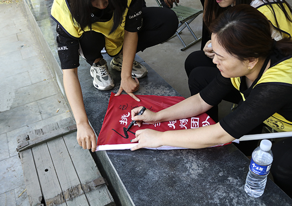 到了拓展基地,大家稍事休整后,教练把我们带到了训练基地,我们一行人分成了四个小组,每组都是一个团队。教官限定我们在二十分钟内来给自己的队伍起队名、队歌和口号。